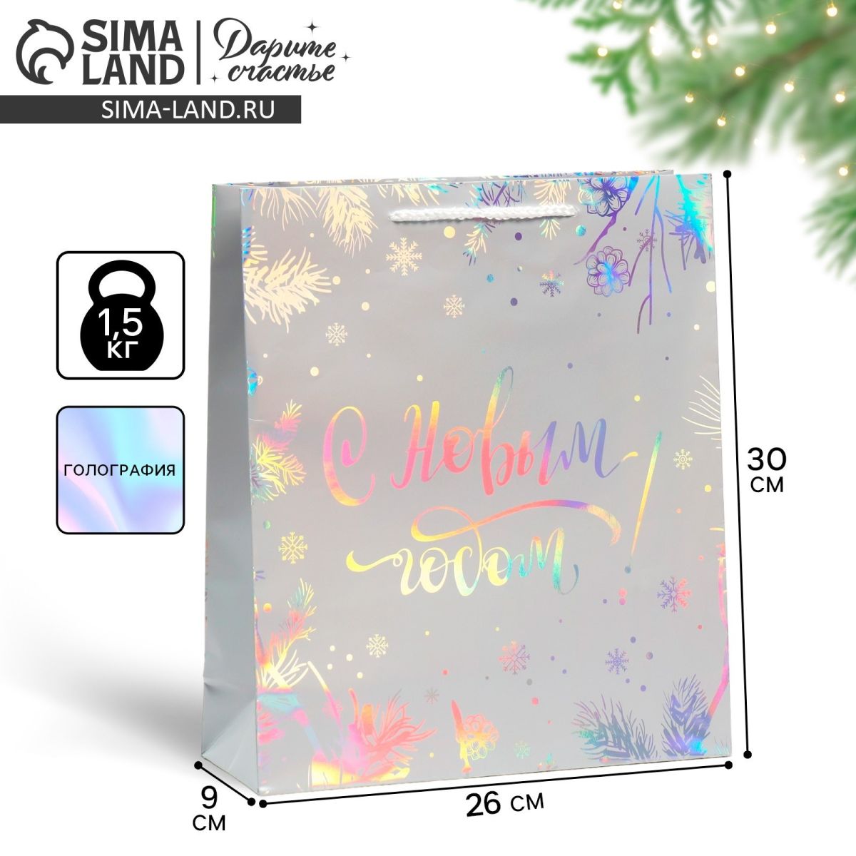 Пакет подарочный новогодний голографический «Яркого Нового Года», 26×30×9 см